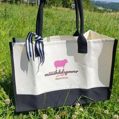 Große Shoppingtasche mit Logo. Der schwarze Boden verhindert schnelle Verschmutzungen.