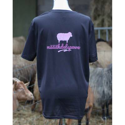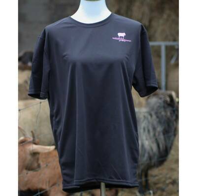 T-Shirt in schwarz mit großem Logo auf der Rückseite und kleinem Logo auf der linken Brust.